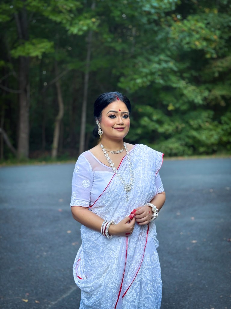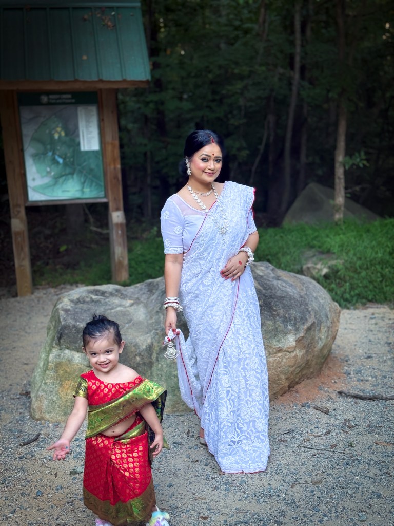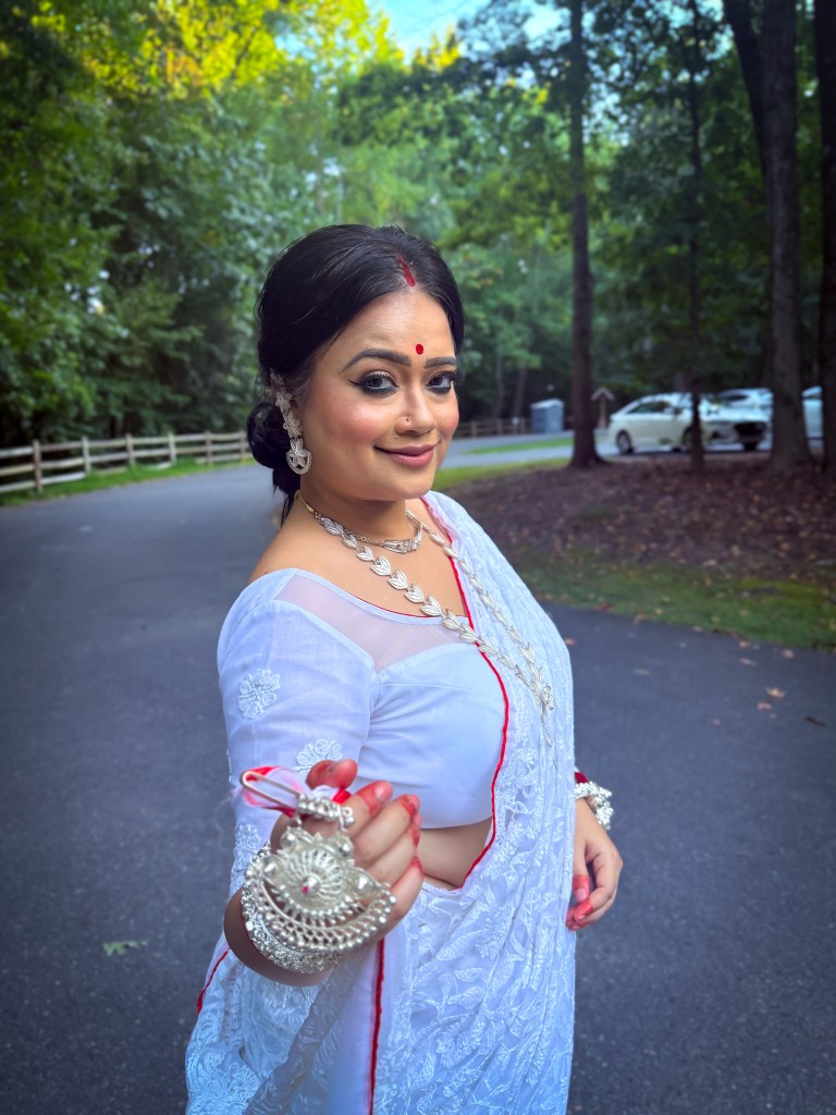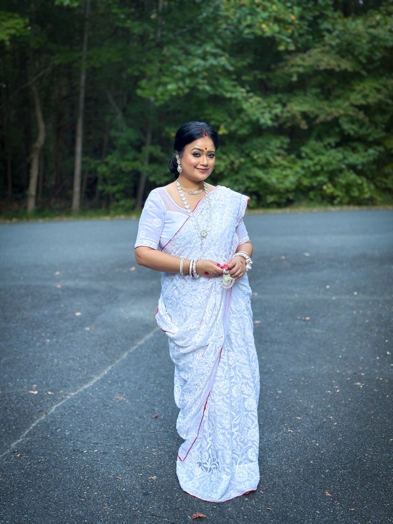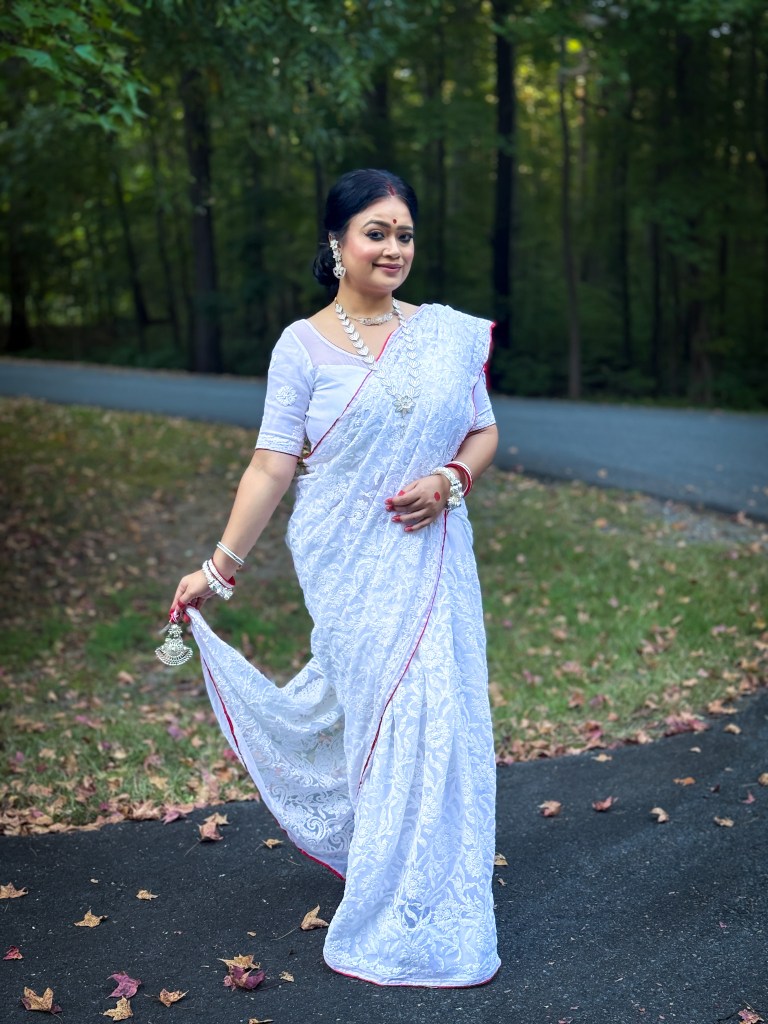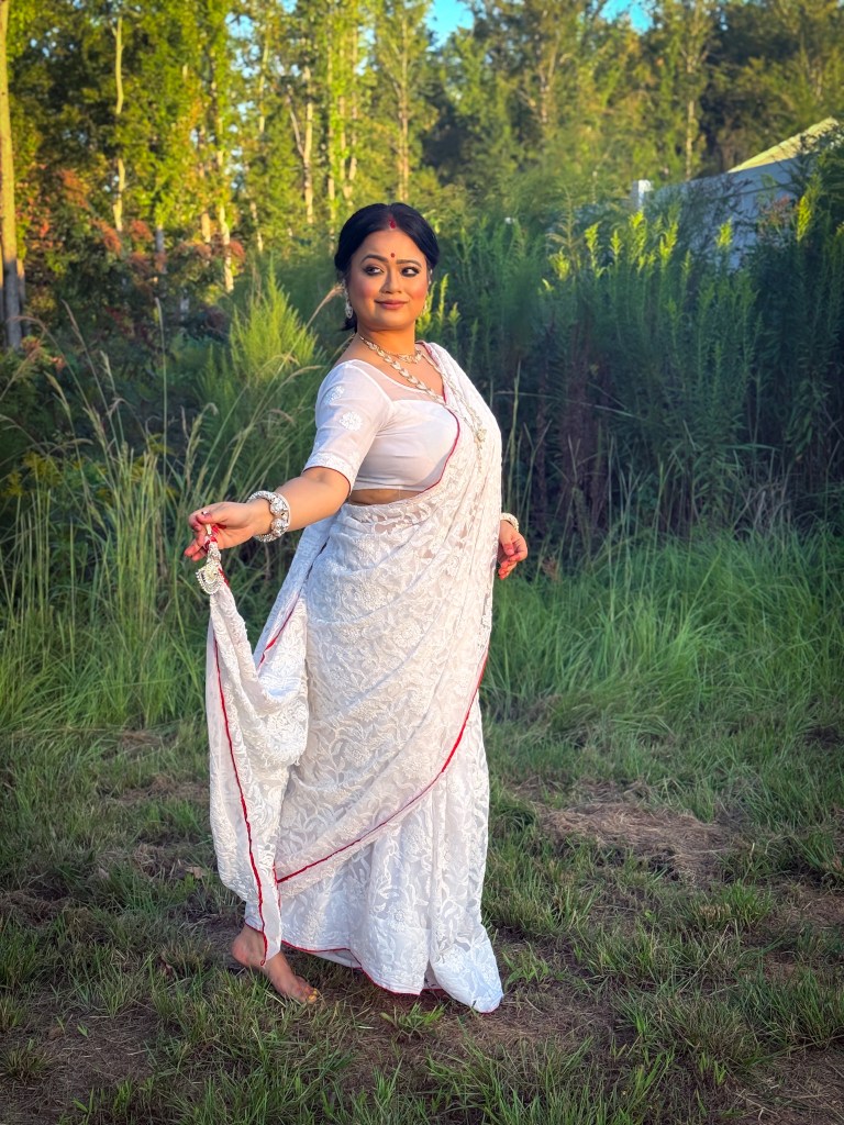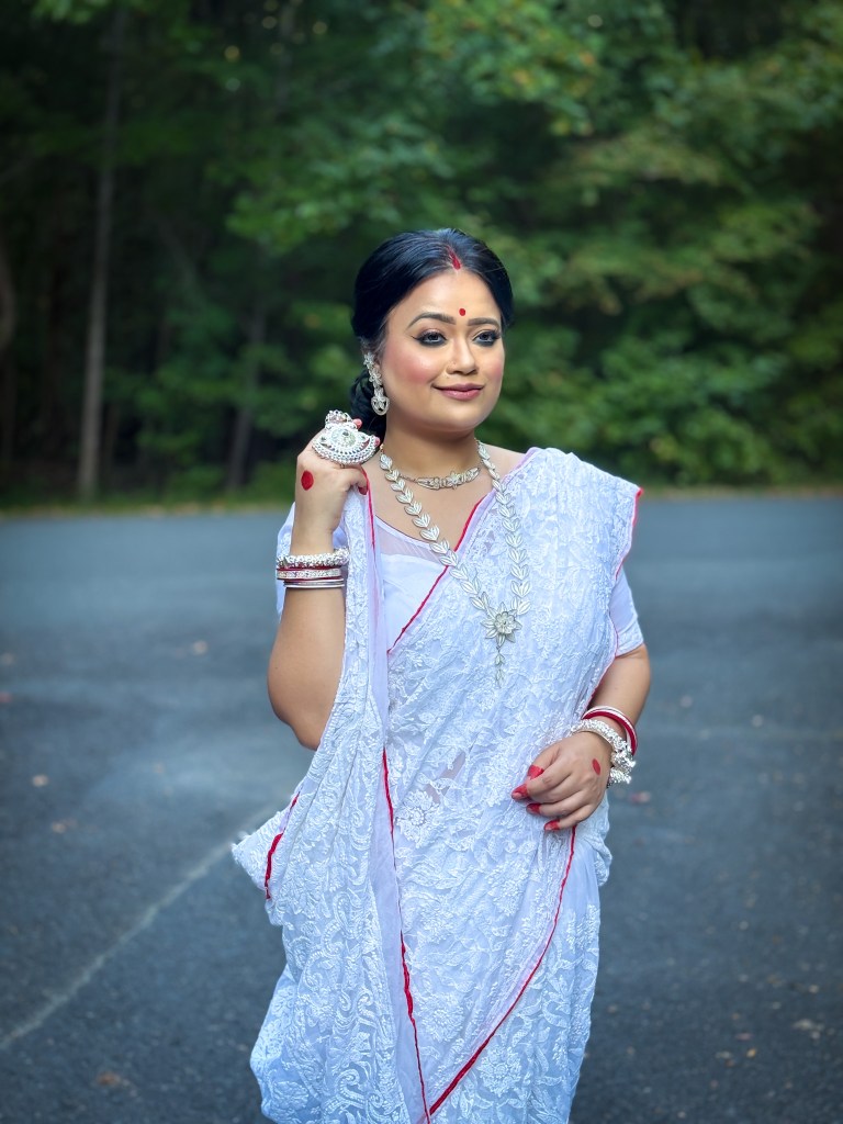 Pujo, the sheer nostalgia. How quickly a year has flown by. So much has happened, and so many things have changed for the better. Some changes I embraced wholeheartedly, while others required battles within myself. Pujo remains an enduring nostalgic feeling for us, a reminder of our past, the good old days. The sound of Dhaak, the fragrance of Parijat, catching up with old friends, late-night pandal hopping, the delectable street food, cleaning up our home, passing through age-old traditions, and celebrating our inner strength—all for Ma Durga’s return to her homeland, as we affectionately call it.