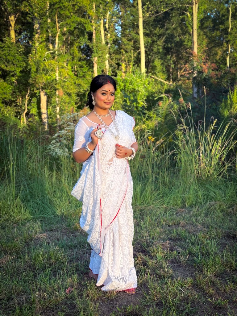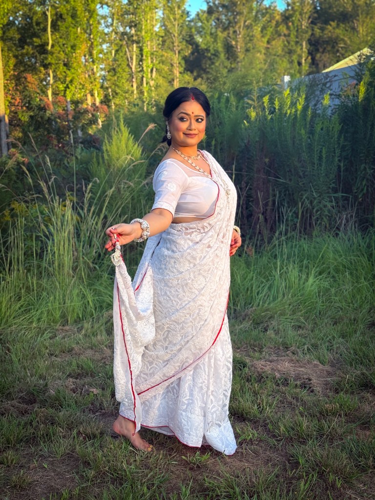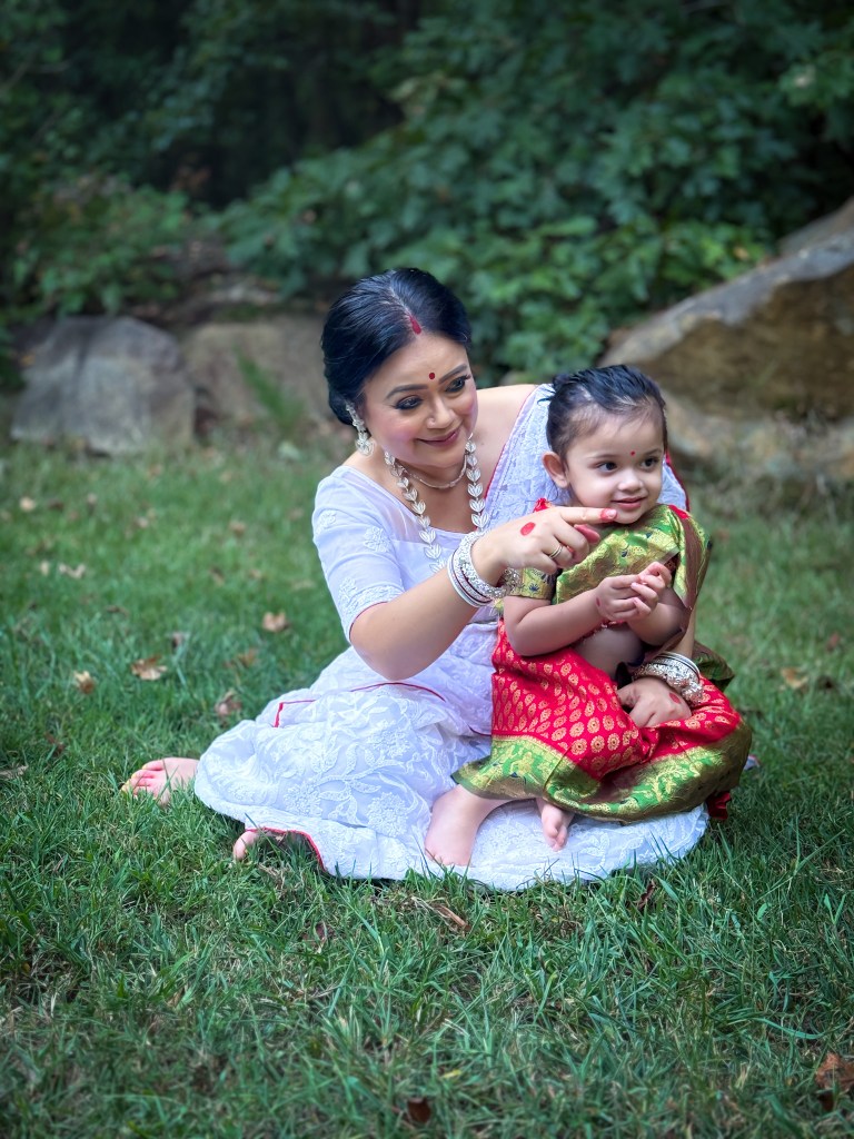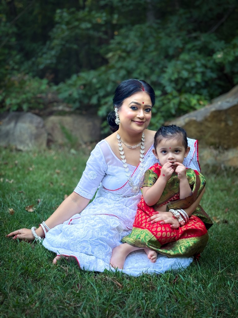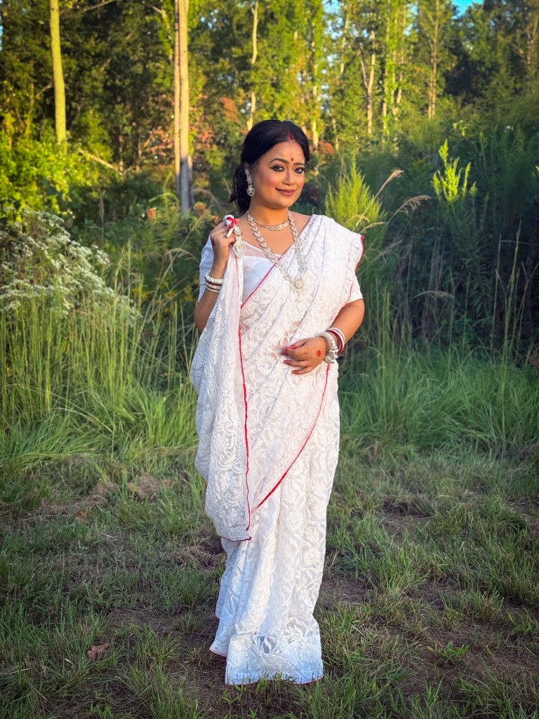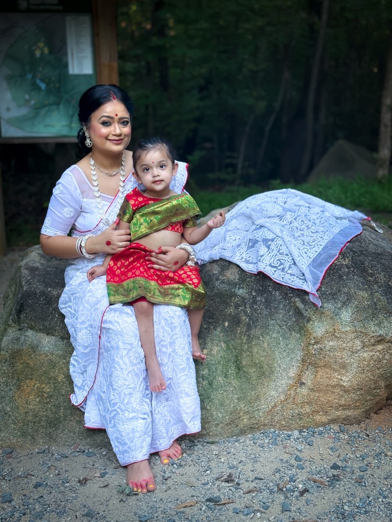 Pujo, the sheer nostalgia. How quickly a year has flown by. So much has happened, and so many things have changed for the better. Some changes I embraced wholeheartedly, while others required battles within myself. Pujo remains an enduring nostalgic feeling for us, a reminder of our past, the good old days. The sound of Dhaak, the fragrance of Parijat, catching up with old friends, late-night pandal hopping, the delectable street food, cleaning up our home, passing through age-old traditions, and celebrating our inner strength—all for Ma Durga’s return to her homeland, as we affectionately call it.