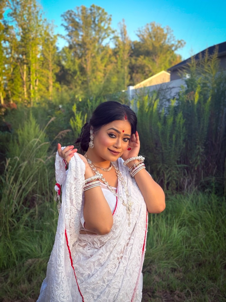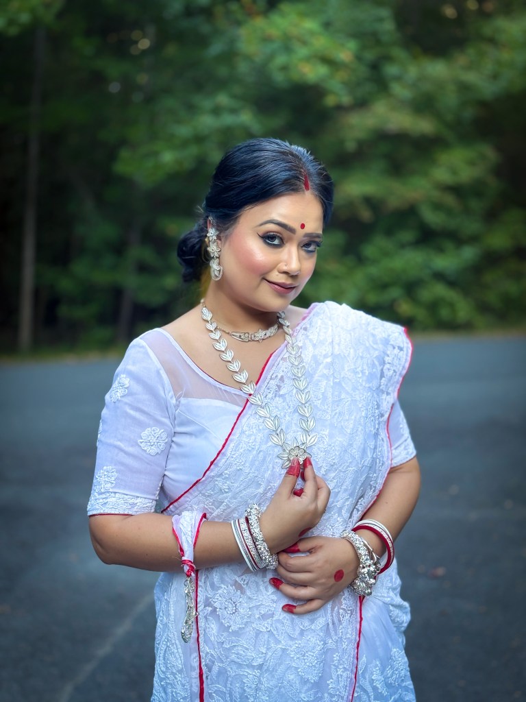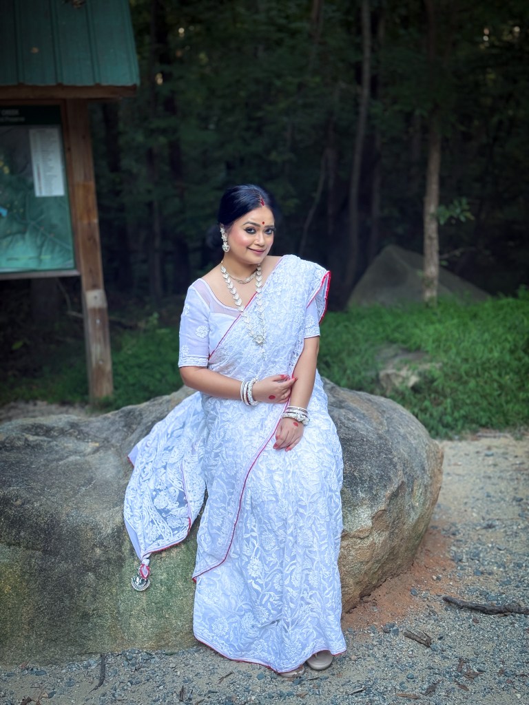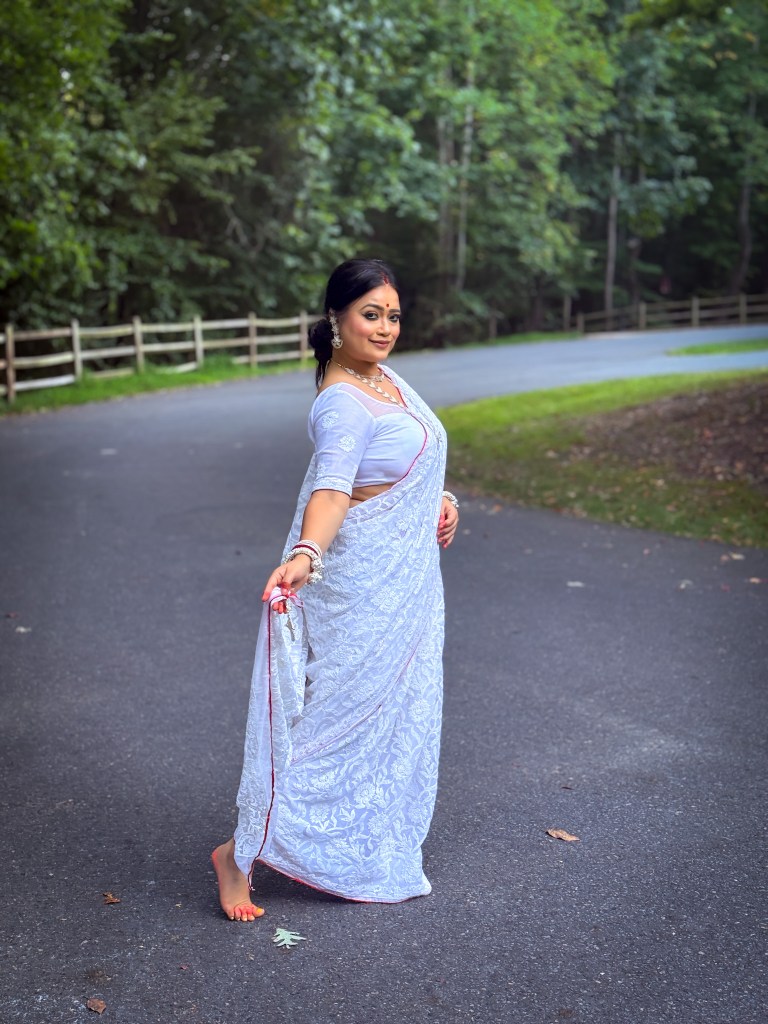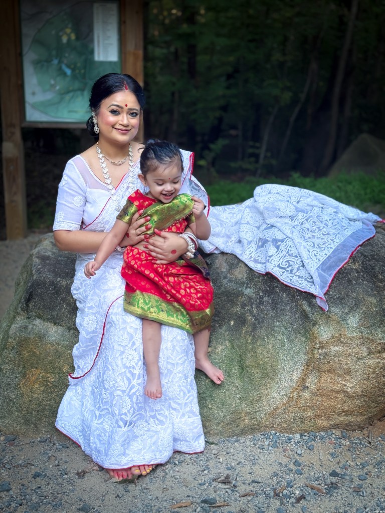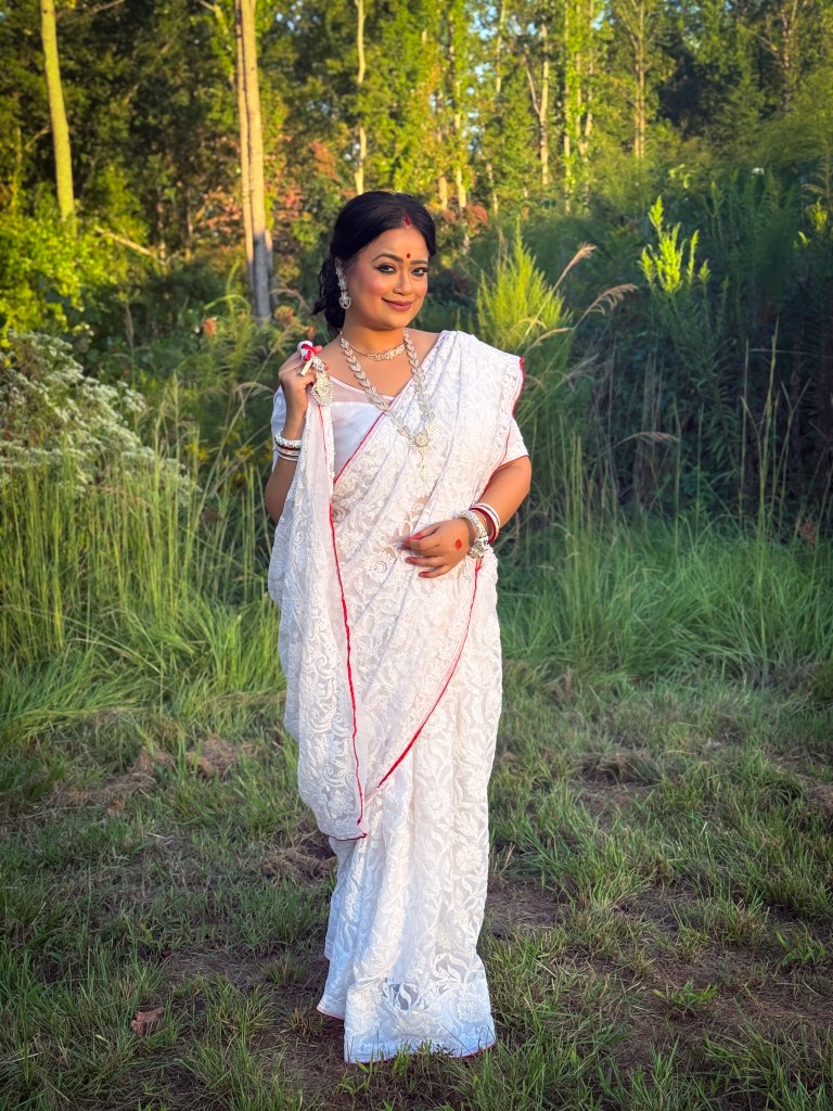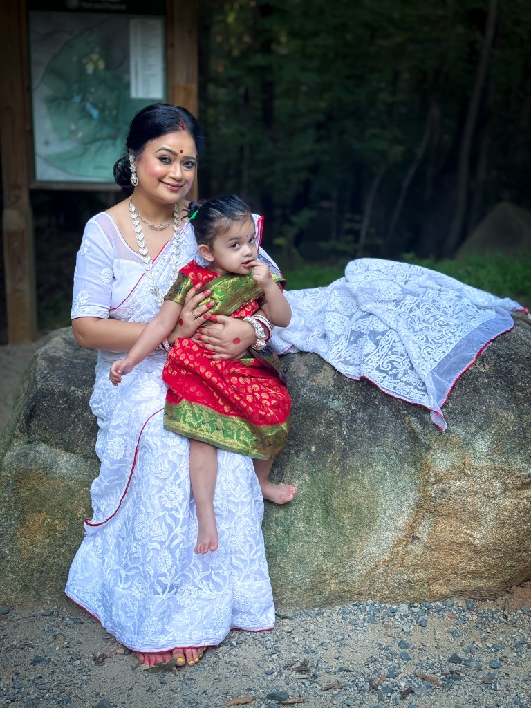 Pujo, the sheer nostalgia. How quickly a year has flown by. So much has happened, and so many things have changed for the better. Some changes I embraced wholeheartedly, while others required battles within myself. Pujo remains an enduring nostalgic feeling for us, a reminder of our past, the good old days. The sound of Dhaak, the fragrance of Parijat, catching up with old friends, late-night pandal hopping, the delectable street food, cleaning up our home, passing through age-old traditions, and celebrating our inner strength—all for Ma Durga’s return to her homeland, as we affectionately call it.