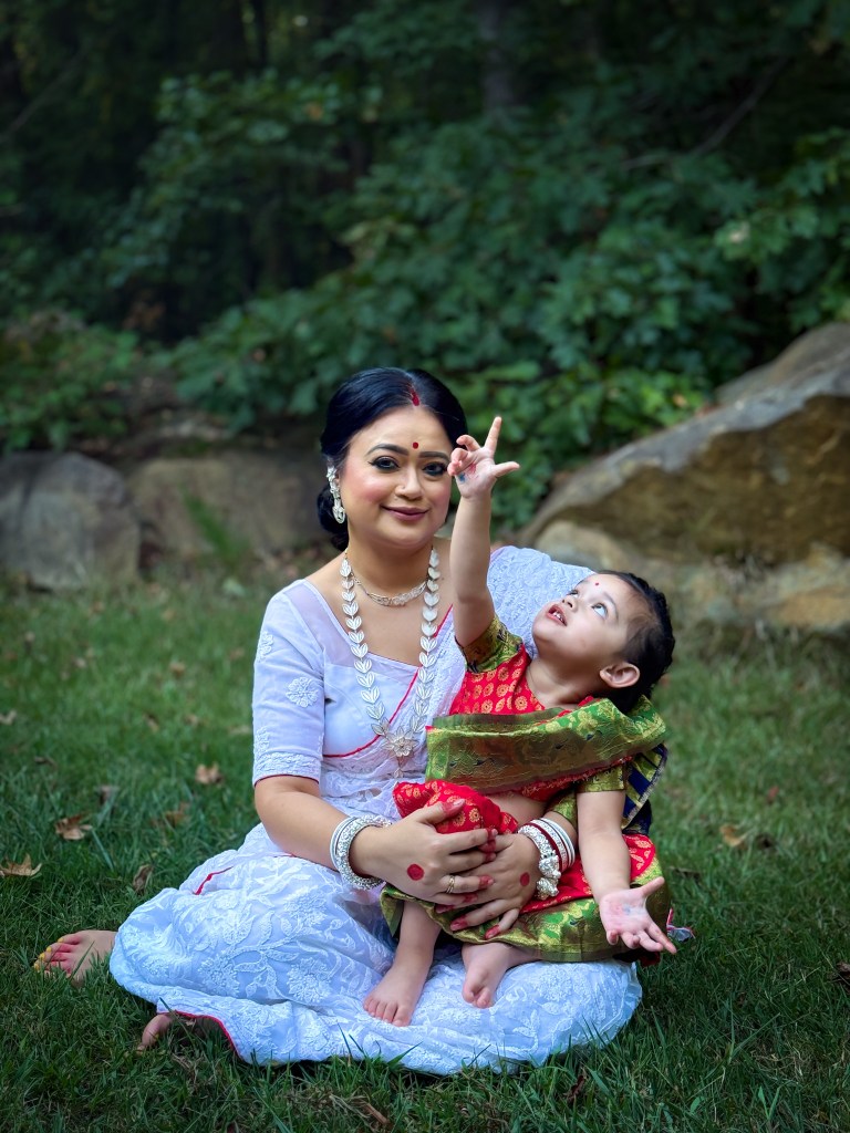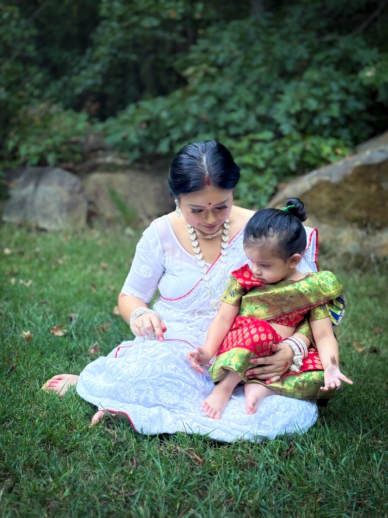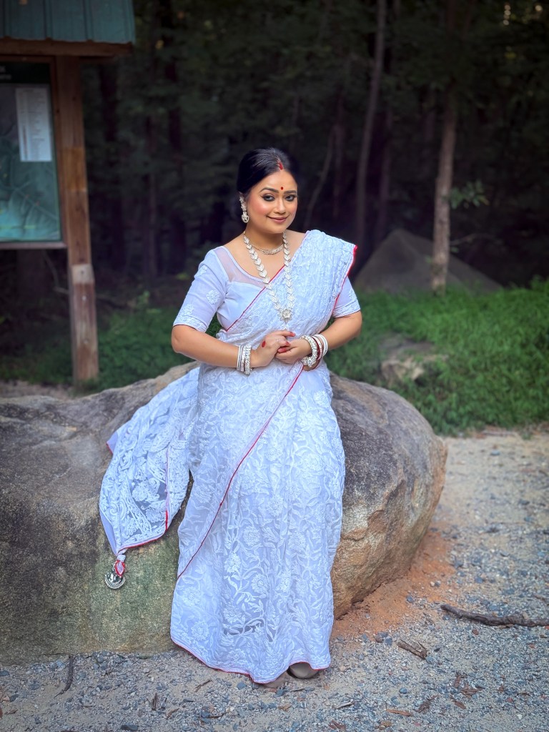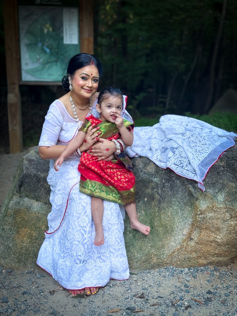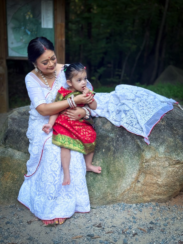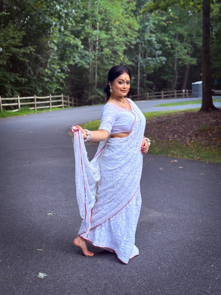 Pujo, the sheer nostalgia. How quickly a year has flown by. So much has happened, and so many things have changed for the better. Some changes I embraced wholeheartedly, while others required battles within myself. Pujo remains an enduring nostalgic feeling for us, a reminder of our past, the good old days. The sound of Dhaak, the fragrance of Parijat, catching up with old friends, late-night pandal hopping, the delectable street food, cleaning up our home, passing through age-old traditions, and celebrating our inner strength—all for Ma Durga’s return to her homeland, as we affectionately call it.